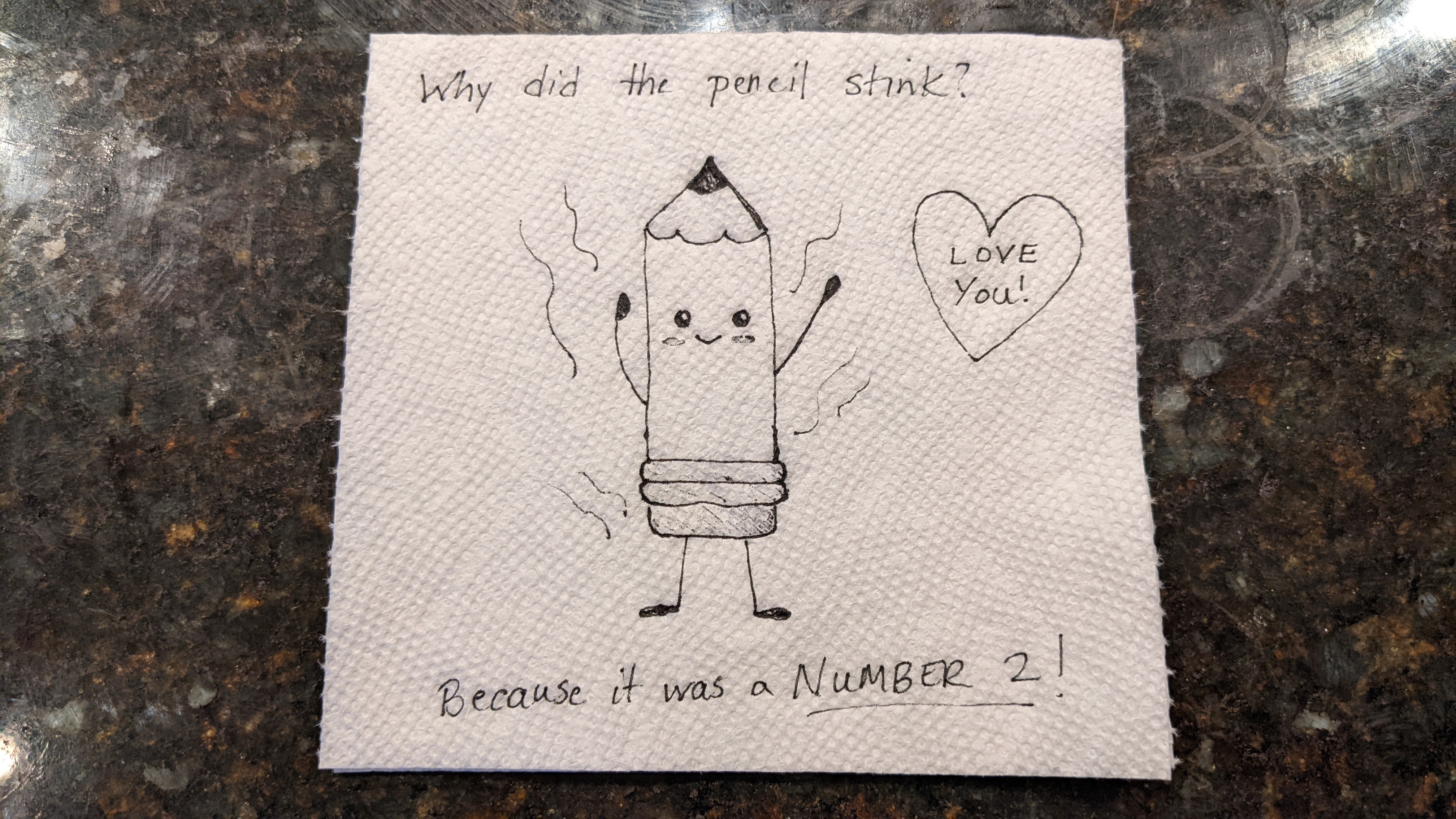 Had to end with a joke that I knew would get me a solid laugh. And that's a wrap for another year of terrible jokes. Can't believe this dude is off to middle school in the Fall. Not sure yet what that means for mamadoodles. We'll have to see if he's too cool for them next year. Fingers crossed he never outgrows his appreciation of puns.